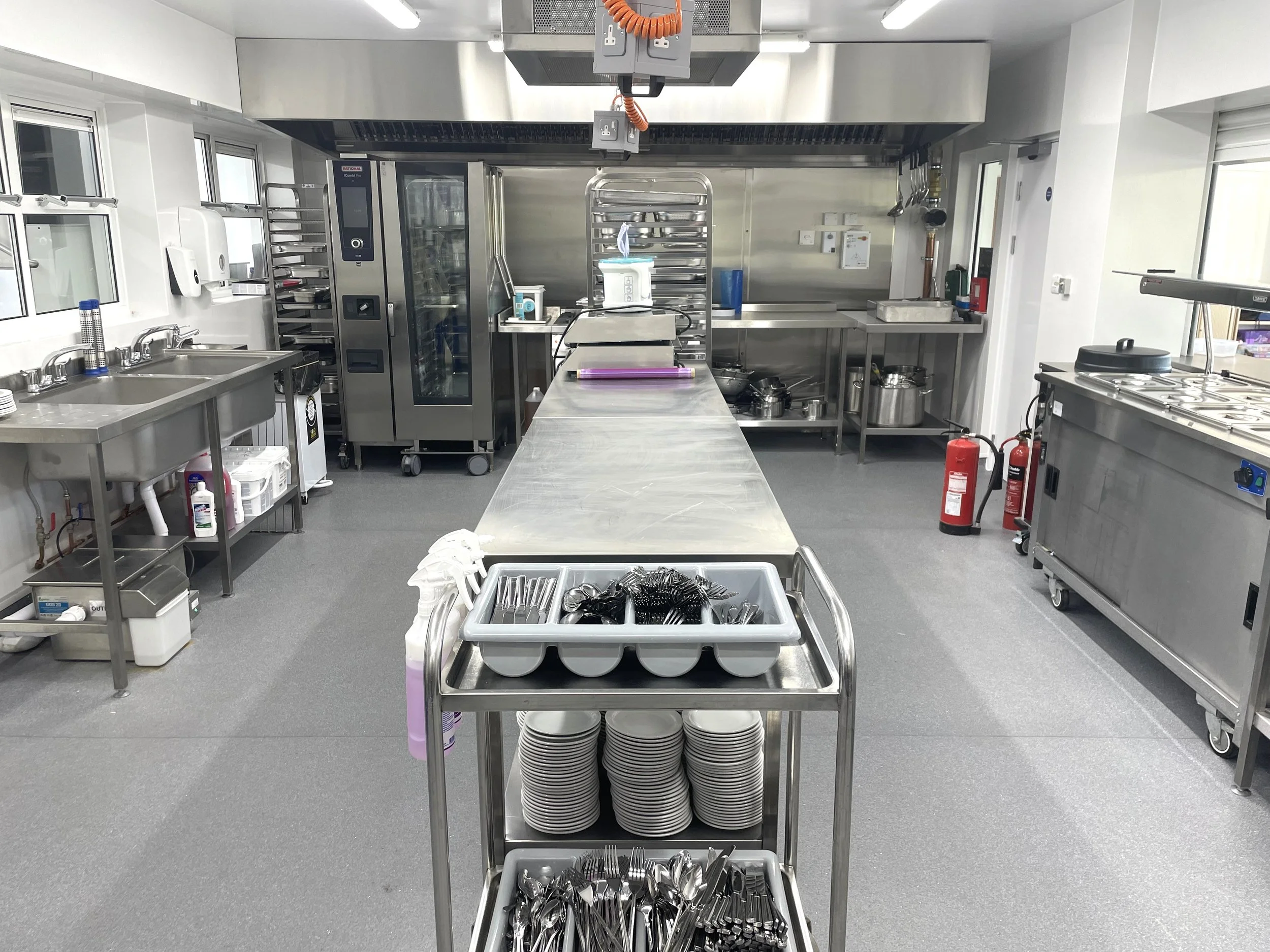 The works included new mains distribution, lighting, and power to support upgraded kitchen equipment. Enhancements to the fire safety system were also completed, bringing the facility fully in line with modern safety standards. In addition, a new ventilation system was installed to accommodate the increased volume of meals produced, ensuring a safe, efficient, and future-ready catering environment.
